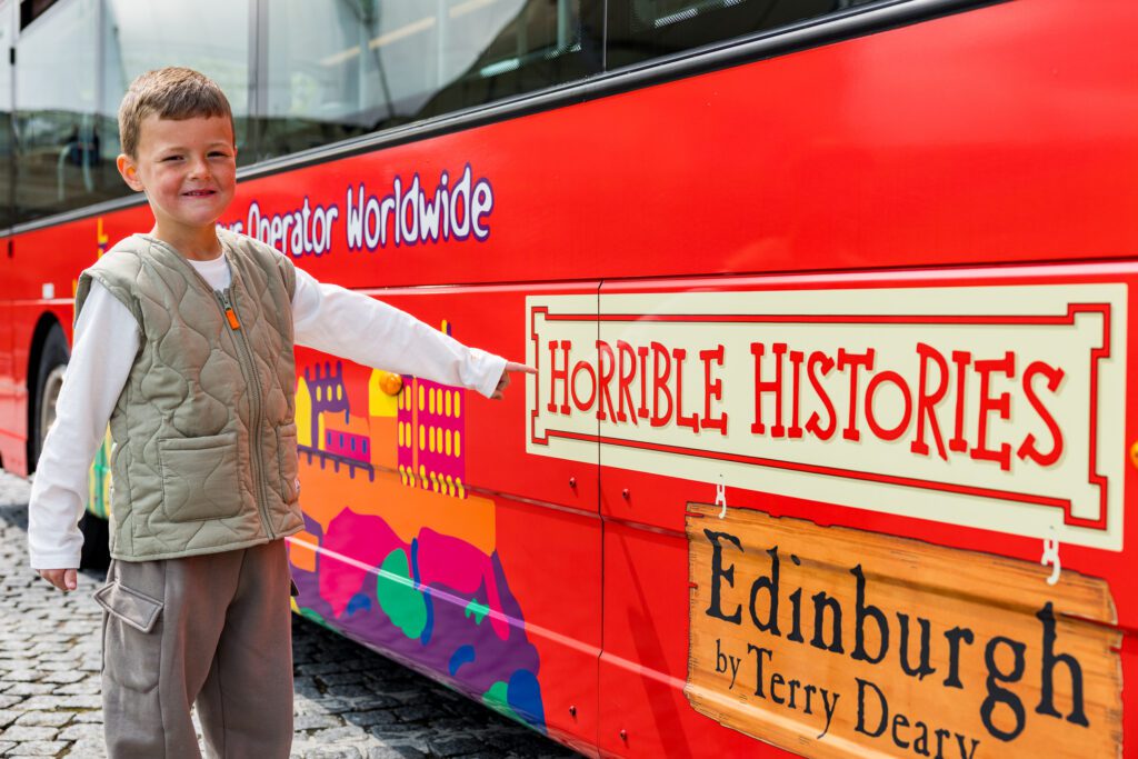 Let Terry Deary’s Horrible Histories commentary guide your journey through Edinburgh on the CitySightseeing Edinburgh tour. Explore the historic Grassmarket, Royal Mile and beyond with a focus on the gory past of the city. For older kids (8+) you can receive discounted entry to the Edinburgh Dungeon from our ticket sellers and staff!
