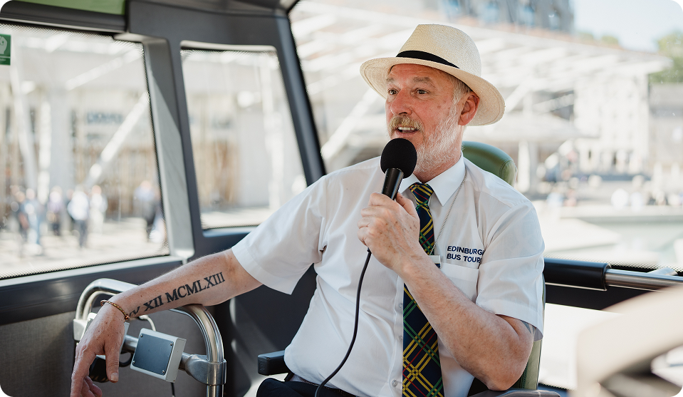 The CitySightseeing Edinburgh tour features a multi-lingual commentary in 9 languages. Headphones are provided on board.